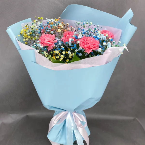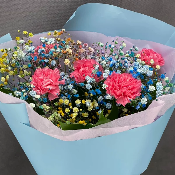 Букет "Цветочная легкость"- это необычный и стильный букет, который создан специально для тех, кто любит неожиданности и хочет выделиться. Букет состоит из разноцветной гипсофилы и гвоздик, сочетающиеся в неожиданном и стильном букете. Гипсофила символизирует невесомость и легкость, создавая атмосферу мечты и идеальности, а розовая гвоздика добавляет нотку романтики и любви. Яркая упаковка добавляет еще больше стиля и индивидуальности к букету. Этот букет идеально подходит для презентации в качестве подарка для любимой или для декорации интерьера, он может быть также хорошим выбором для специальных мероприятий, таких как выпускной вечер или день рождения. Букет "Цветочная легкость" произведет незабываемое впечатление на каждого, кому вы его преподнесете, и привнесет свежесть и яркость в любой интерьер. Он станет настоящим акцентом в любом помещении.